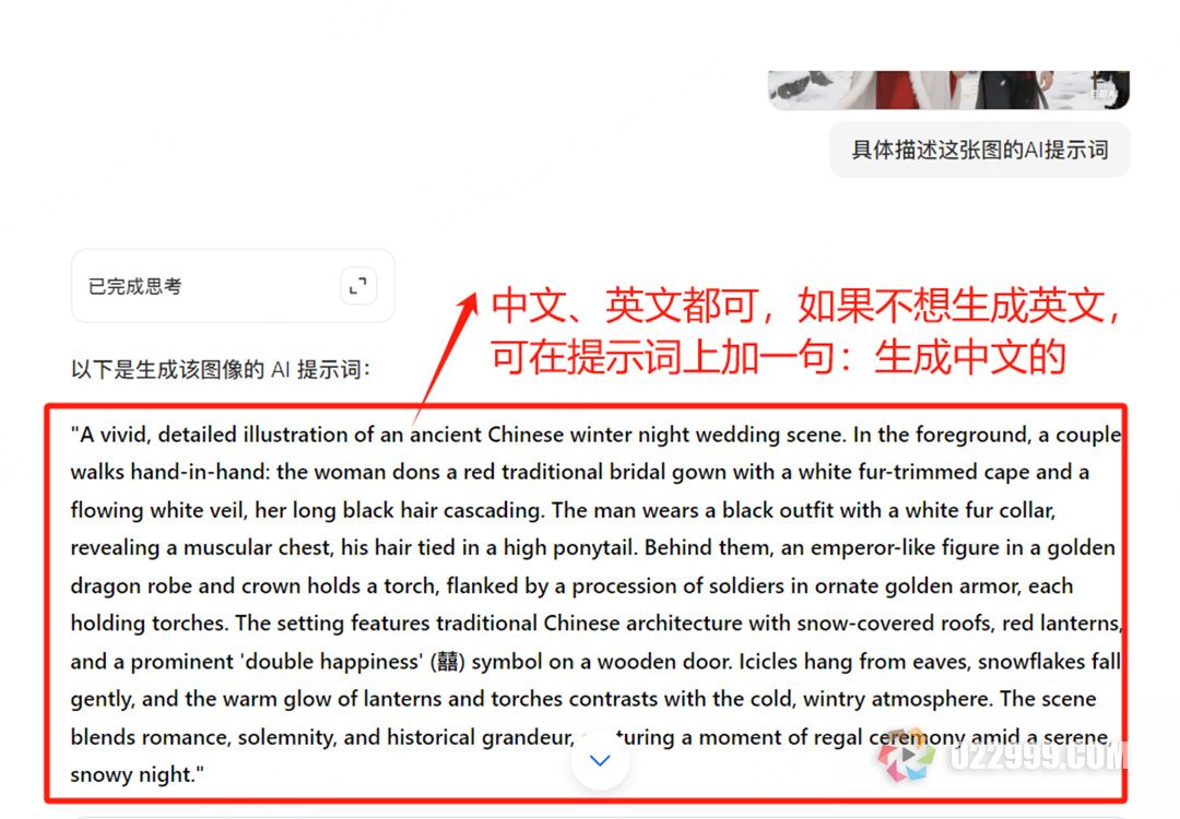 - 在豆包上传你找到的爆款参考图,然后输入口令:具体描述这张图的AI提示词